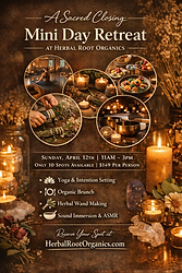 β¨ Event Overview Join us for an intimate and heart-centered gathering as we honor the final week of our beloved space. This mini retreat is designed to nourish your body, calm your mind, and reconnect you to your inner self through movement, creativity, and sound. π Event Details Sunday, April 12th 11:00 AM β 3:00 PM π Herbal Root Organics β Boonton, NJ Limited to 10 guests only π« Exchange: $149 per person πΈ Retreat Flow π§ββοΈ Grounding Yoga (11:00 β 11:45) Led by Courtney Kramer A gentle, heart-opening flow to arrive in your body and set intentions for the day. π₯ Organic Brunch Experience (11:45 β 12:30) Nourish yourself with a beautifully curated, seasonal organic brunch prepared with love. πΏ Herbal Wand Making Ritual (12:30 β 1:45) Create your own handcrafted herbal wand using dried flowers and sacred herbs. Infuse it with your intentions β a keepsake to take home from this special day. π Sound Immersion + Light Touch + ASMR (1:45 β 3:00) Lef by Lauryn Casazza Drop into deep relaxation with a multi-sensory sound journey including: Gentle instruments Light touch therapy Soft ASMR elements for nervous system regulation Aromatherapy π« Energy + Experience This is more than an eventβ¦ it is a closing ceremony, a thank you, and a transition into whatβs next. Expect: A cozy, candlelit, apothecary atmosphere Deep connection + intimate group energy Intentional, slow, nourishing moments A space to reflect, release, and receive πΌ What to Bring Pillow Water bottle Journal (optional but encouraged) An open heart π€